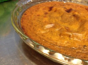 I’m not much of a piecrust lover, especially in pumpkin pie I think that for the most part it is soggy and bland and does nothing to enhance the pumpkin filling.  So the answer is to leave out the crust.  I also lighten this recipe up by substituting Splenda for sugar.  If you don’t want anything artificial or you don’t need to watch all those sugar calories go ahead and use the sugar.  What you do in your kitchen is your own decision.