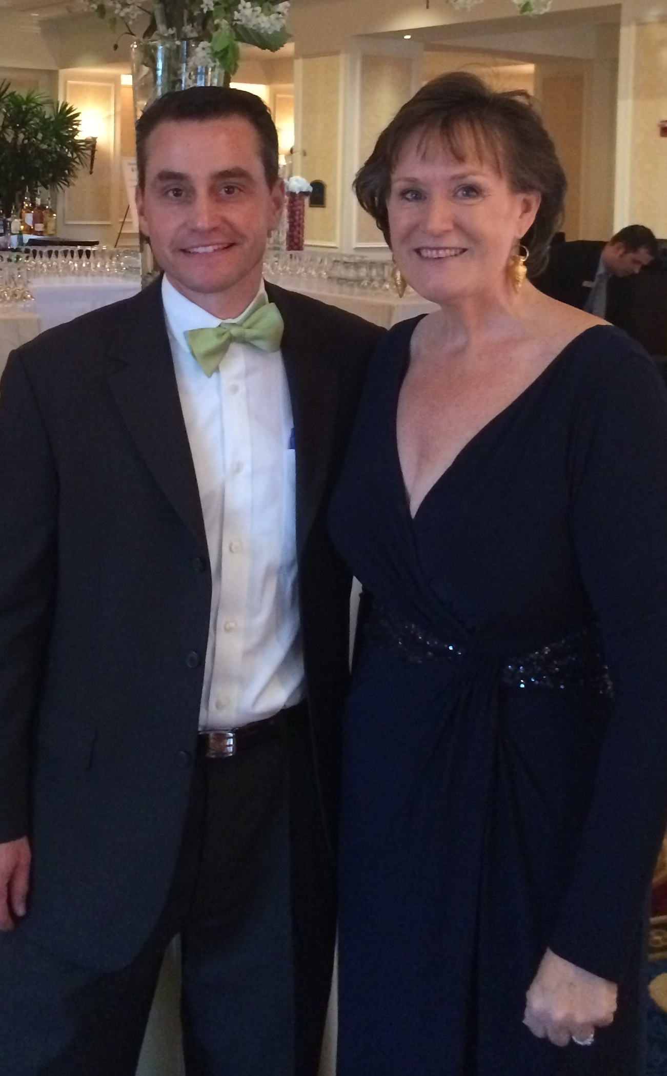 Lee and I had to get to the Washington-Duke an hour before the auction for the “sound check.” This is the time that the techy guys wire us up with mikes, mine being the over the ear little wire on my cheek and Lee’s a microphone clipped below his bow tie. We practice our witty banter in a giant ballroom full of tables and chairs, but devoid of the 350 guests. All sounds fine. But having been a charity auctioneer I know this sound check means nothing. Well it just means that the techy guys know their equipment is hooked up.