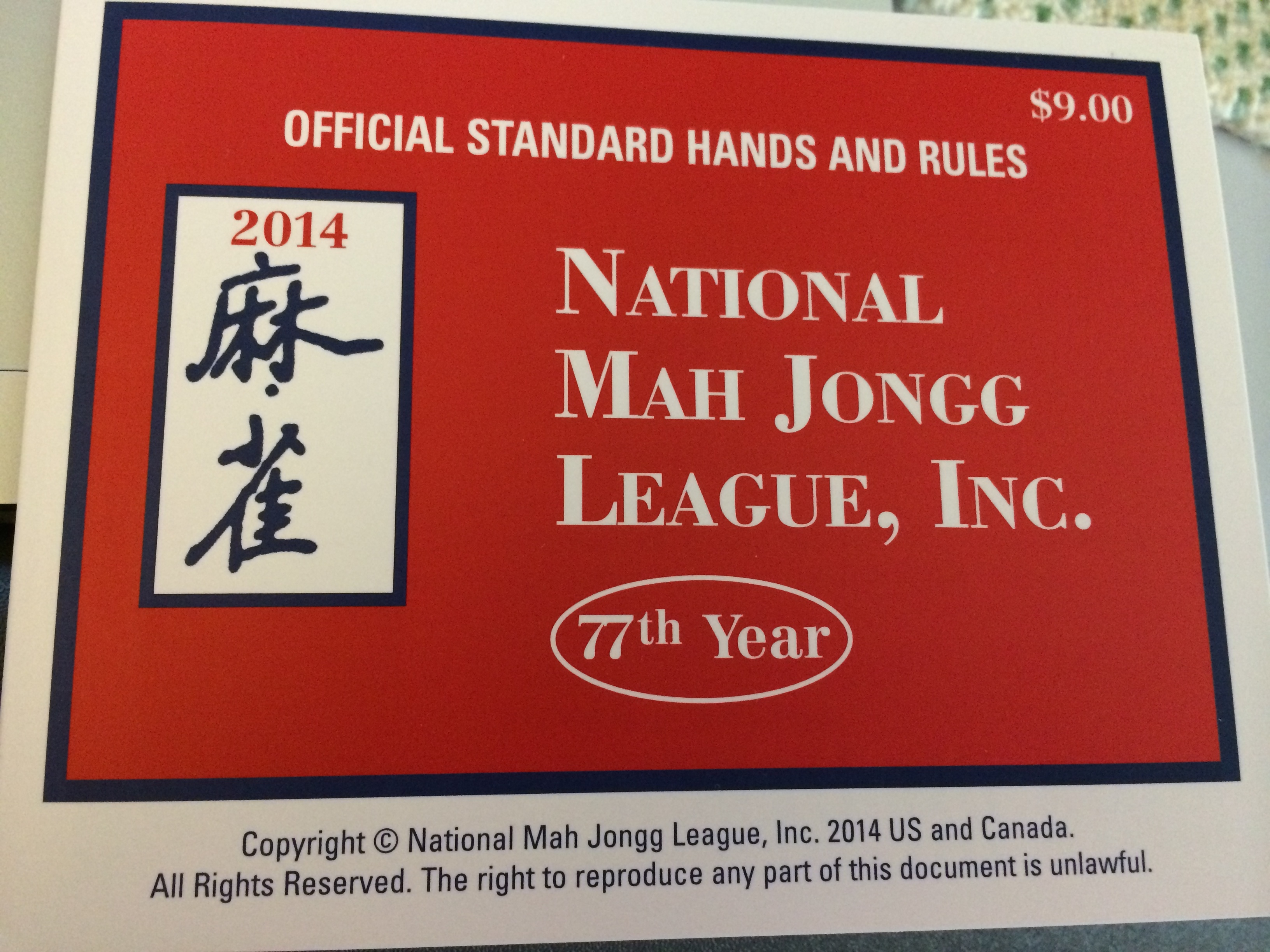 I went to the mailbox today and it was like Christmas. The new Mah Jongg card for 2014 was there. For some reason the monopoly run by Ruth at the National Mah Jongg League in NYC has the New Mah Jongg year start April 1. That means that women (and maybe a few men) around the country are all getting their new cards that hold the key to what hands you can win with for the next 12 months.
