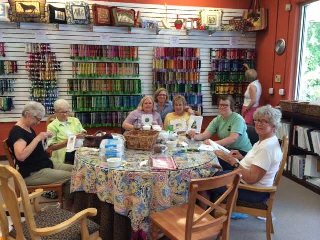 At my LNS there is a community table where any customer is welcomed to sit down and stitch and talk and learn from each other. At first I was a little intimidated by the years of experience and the quality of the group’s work, but I sat down anyway. I was quick to find out that regardless of your skill level it was the most welcoming and fun group of ever changing women and some very friendly regulars.