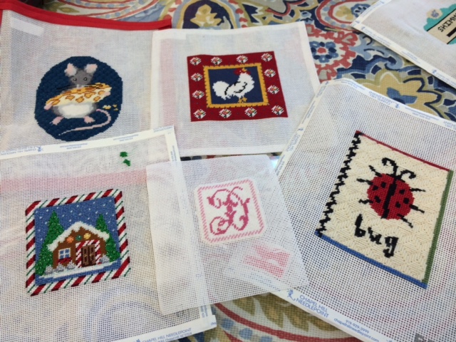 Today is the official year end to turn in needlepoint Christmas ornaments at my Local Needlepoint Shop (LNS), Chapel Hill Needlepoint so stitched canvases can get fabricated into actual ornaments in time for Christmas. I only stitch Christmas ornaments so today is like my year-end, my April 15, my New Year’s Eve.