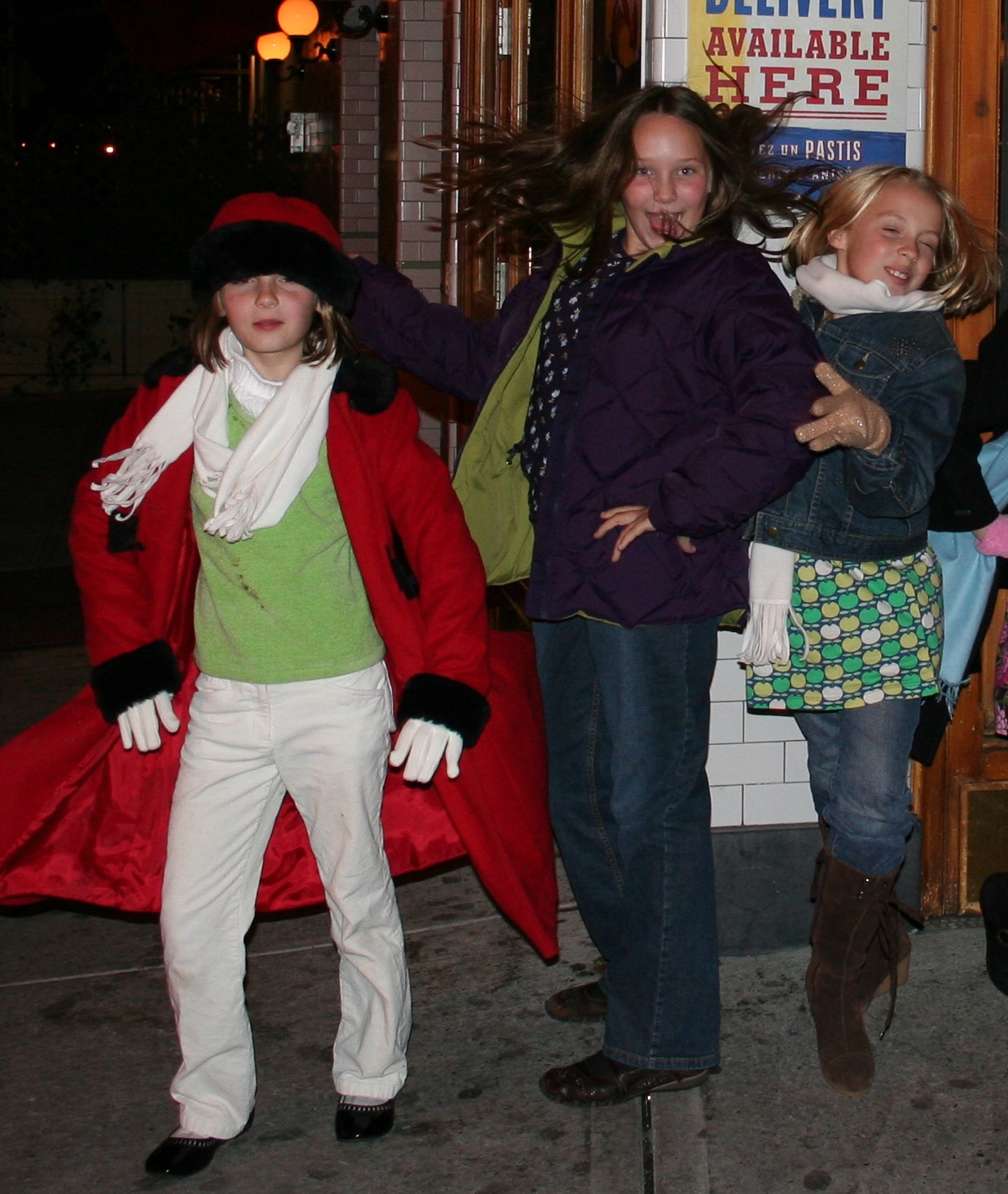 And here we sit. The kids all seem to be having a great time, as they report to me on their way past my table to use the facilities. Russ told me that there are old risqué french postcards on the wall of the men’s room, but so far the boys have not made a big deal about that and have remained at the tables talking to the real life girls.
