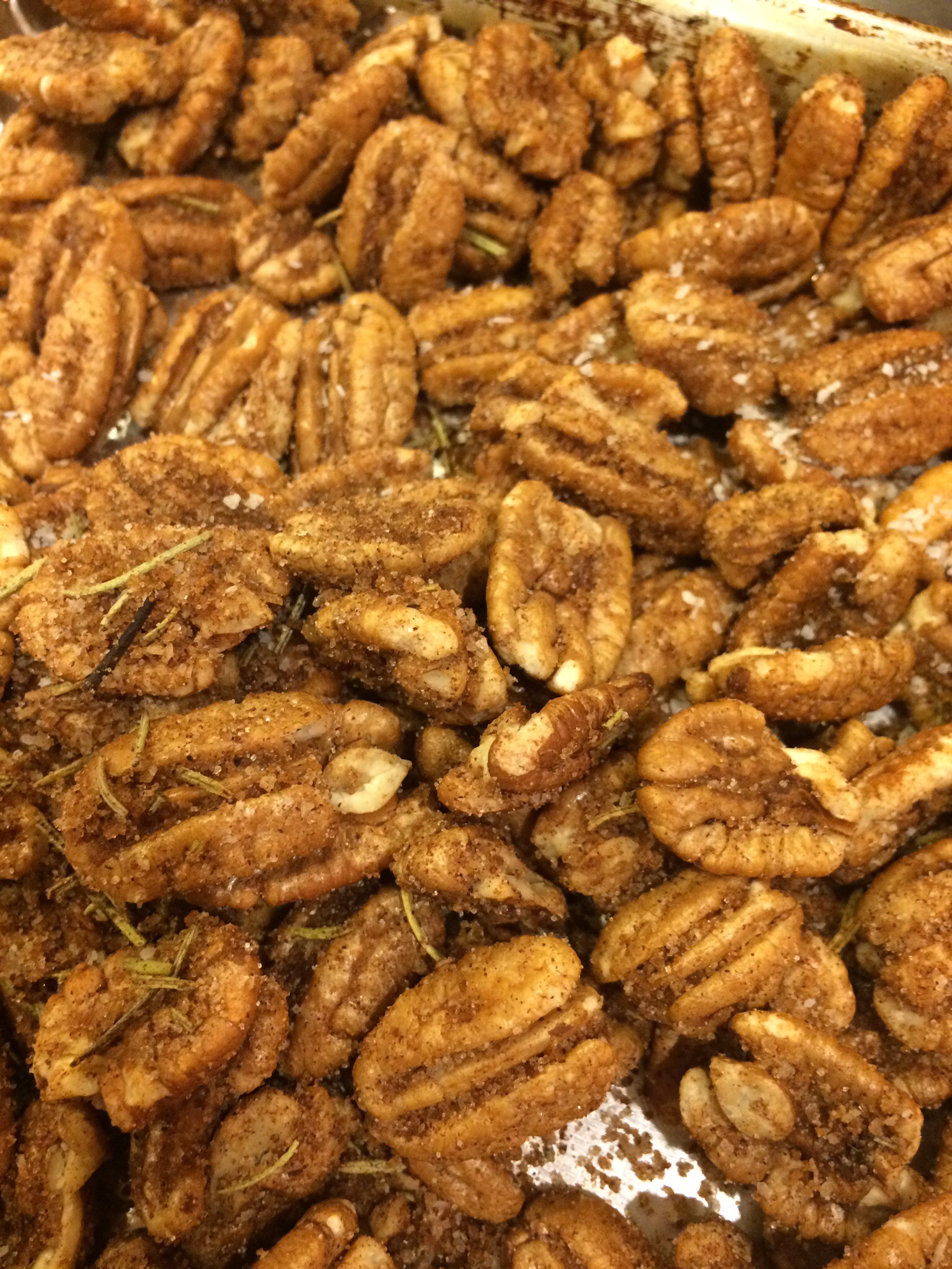 Posted: December 7, 2014 Filed under: Uncategorized Leave a commentI don’t know about you, but I find that when I am having a craving it is usually not just for salt or sugar, but for salt and sugar. Nuts are my favorite snack treat since just a few will make me happy and they feel like they are better than a cookie or a chip. My friend Sara brought some pecans to a get together and they had Rosemary in them which I had never thought of before. So in a nod to her I added Rosemary to this recipe that includes, sweet, salt,and spicy.