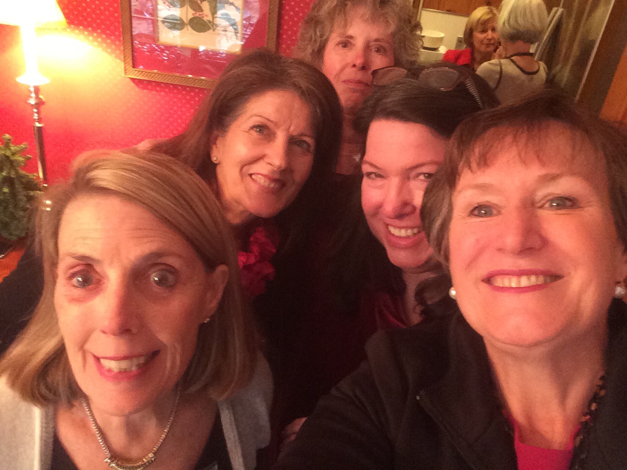 Just after noon I started to feel a little hungry so I decided to get dressed up in my tea party clothes, go get my nails done, which means I could not even touch food and stop by the needlepoint store so I could stitch a little away from food. That part of the plan worked well. Finally 3:00 came and I met my friends at a cozy table by the fire at La Residence.