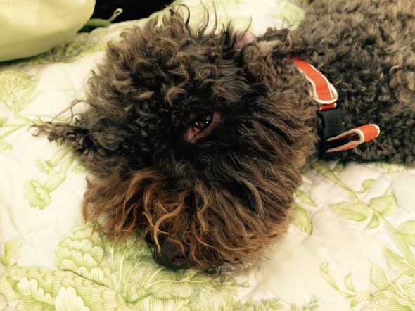 Posted: July 25, 2015 Filed under: Uncategorized Leave a commentHooray! Today has been a great day to be a dog. I got to ride in the car on my daddy’s lap all the way to Camp Cheerio. We came to take my mother Carter out of camp for her 24 hours off. I have missed her so much since she has been gone for three weeks. Since I can’t read the calendar I have no idea how long three weeks is, but it feels like forever. I wander around the house and look for her day and night, but can’t find her anywhere.