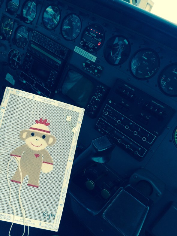 Eventually me and the eight other passengers were escorted to our tiny plane where I got to be the co-pilot. Happily I was able to needlepoint, while flying the plane. And some people thought I only needle pointed through board meetings. The day was looking up.