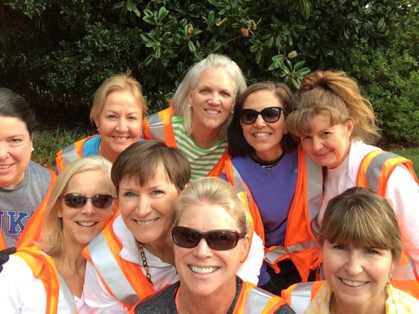 Posted: September 24, 2015 Filed under: Uncategorized Leave a commentThis morning nine members of the Hope Valley Garden Club assembled at Elizabeth Wiener’s house to get our orange vests, black spider gloves and official road side trash collection bags to help with trash pick up week. Our garden club has volunteered to pick up trash along the sides of the road before and I thought it was a fun way to be with friends, get some exercise and do good at the same time. And who can deny that the orange vest is not a big enticement?