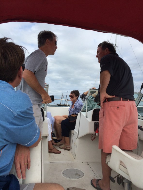 One of the problems of these company retreats is the big dinners after the days of working. Well today it was a half day working and a small trip on a boat thanks to Captain Mark Schweitzer. Unfortunately boating burns no calories whatsoever, just gives us more fun time together.