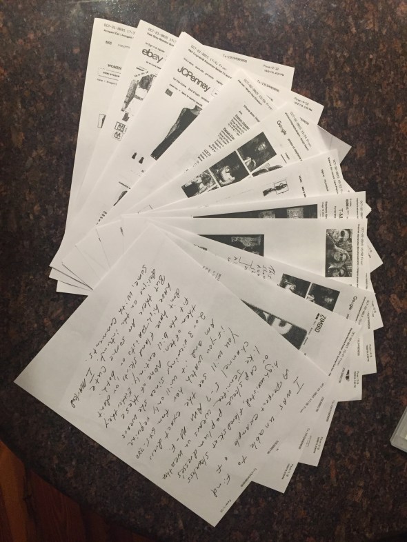 Posted: October 23, 2015 Filed under: Uncategorized 1 CommentThe other day I got a phone call from my Dad. “Do you have any paper in your fax machine?” he led the call with. I should have asked how much paper knowing that my father has been addicted to creating volumes when it comes to writing, and thinks everything needs to be printed out and then faxed so someone else can have a printed copy.