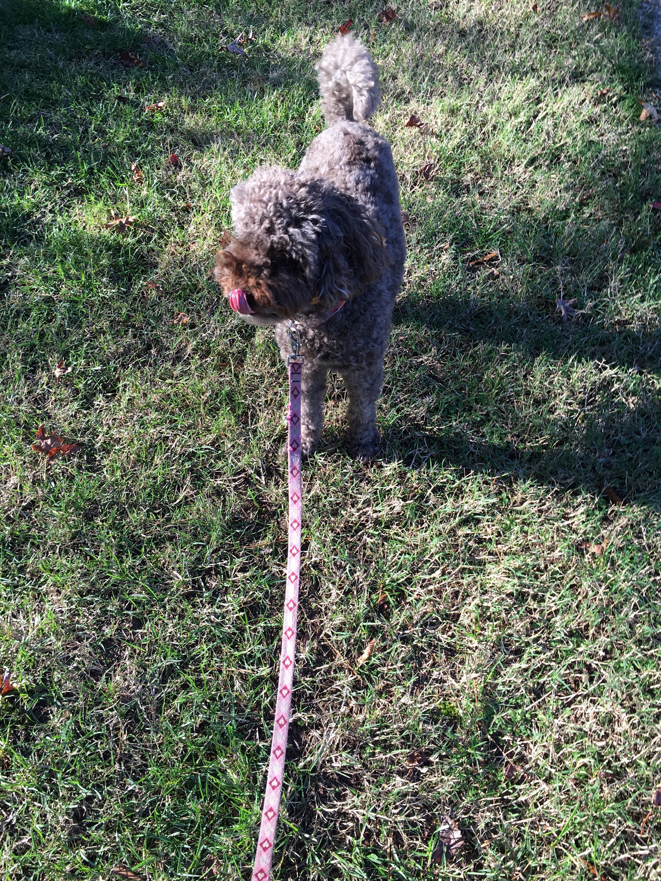 But then later in the morning the rain stopped at last. I took Shay outside, but everything was still so wet she hardly would walk more than ten feet from the front door. Finally the sun made an appearance. So this afternoon I was able to convince the princess pup to walk with me to the post office.