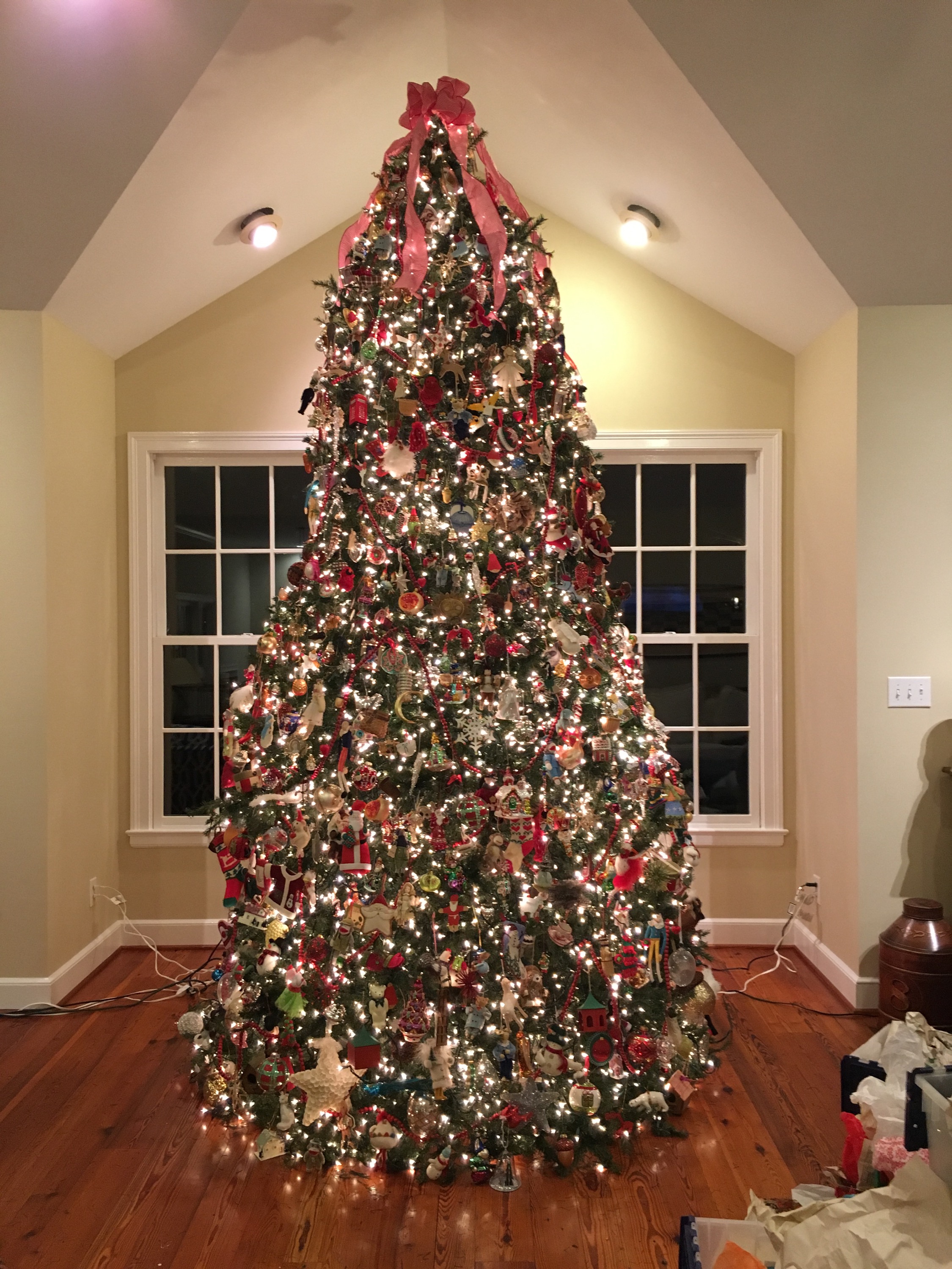 Posted: November 28, 2015 Filed under: Uncategorized 1 CommentNo, I did not run anywhere. If I did try and do a marathon it probably would take me twelve hours. No today was the put the tree up day and it took me twelve hours with only a few breaks, and that includes ornaments. Although I was up and down the twelve foot ladder many times and I was lifting and walking all day my Apple Watch did not register one minute of exercise today. What a bunch of Scrooges out there in Cupertino. They have no idea that putting up a 14 foot tree with over 9,000 lights and thousands and thousands of ornament is the biggest workout there is. There needs to be a Christmas Decorating workout setting.