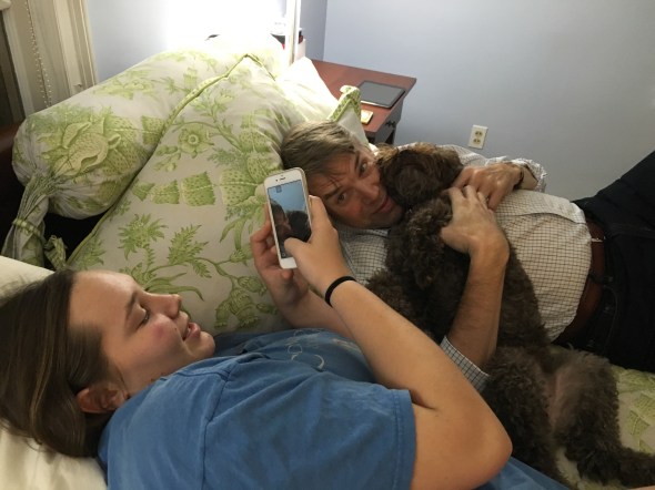 Posted: December 10, 2015 Filed under: Uncategorized Leave a commentRuss has been in Australia all week. His being away is nothing new. As a consultant he is often away working, but this week is different. Not different for me, or for Carter, who is consumed with exam prep and basketball. The one in our house who seems most out of sorts with Russ so far away is Shay Shay.