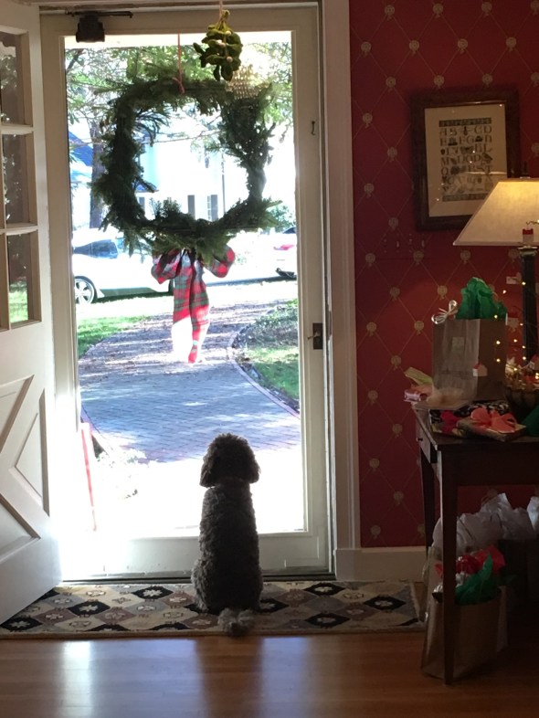 I came home and hung my wreath on the front door and looked around at all the lights, sparkle and decorations, perfectly satisfied that everything screamed, “Santa, stop here.” But then I thought about the simple “joy” wreaths. That’s all it really takes.