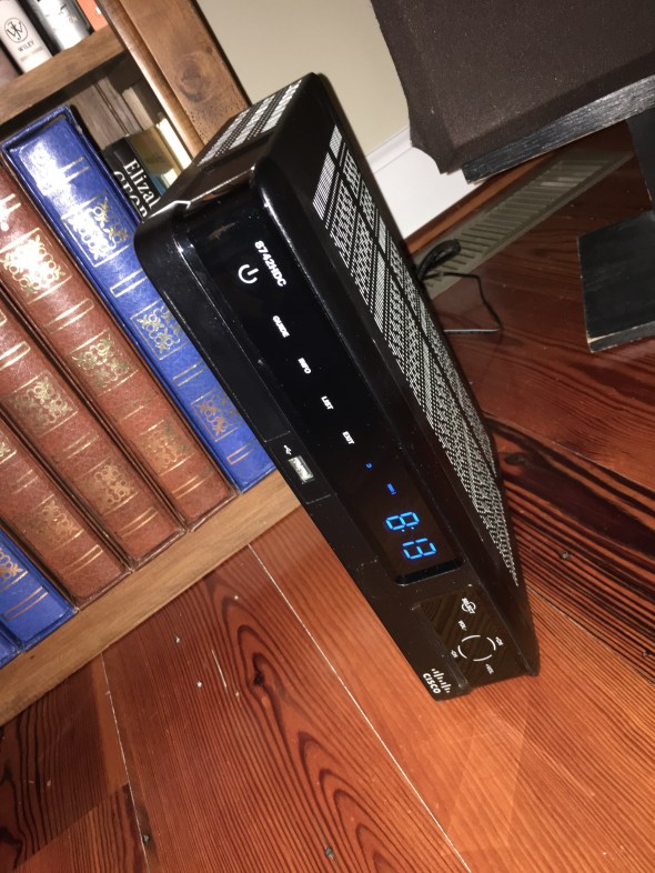 I went home and unplugged and replugged everything in the whole house. That did not solve a thing. At that point I implored Russ to get involved because if I were to call the cable company I might say something that would have them fire me as a client, and maybe call the police on me.