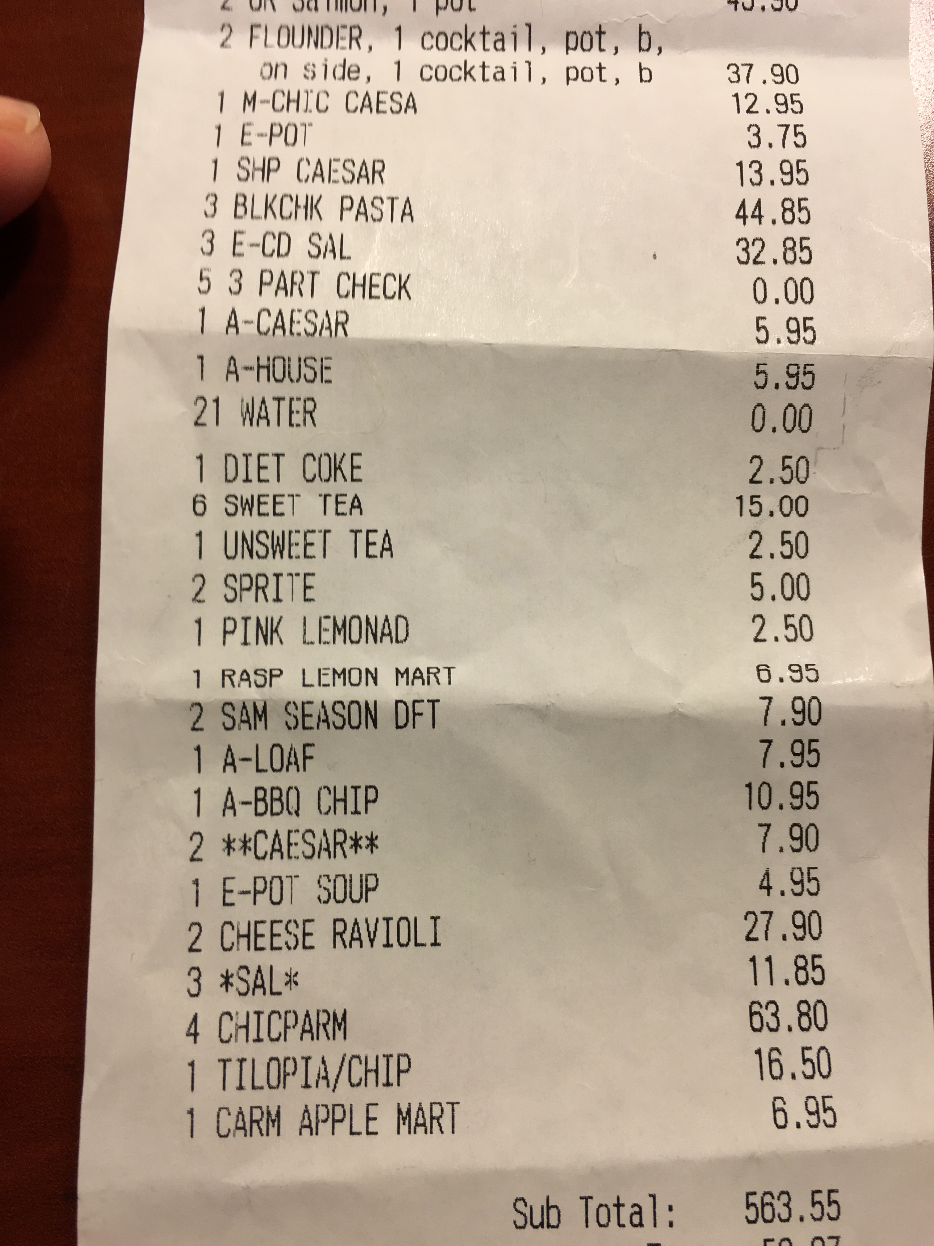 Amazingly the whole team showed up at the restaurant we were having family dinner at at the right time. Many of us skipped checking in the hotel until after dinner so we would be on time, but that was no big deal. After dinner the waiters could not figure out how to split the check up so we just paid the whole thing and will figure it out tomorrow. After the terrible day of driving there was no reason to make everyone sit any more than necessary.