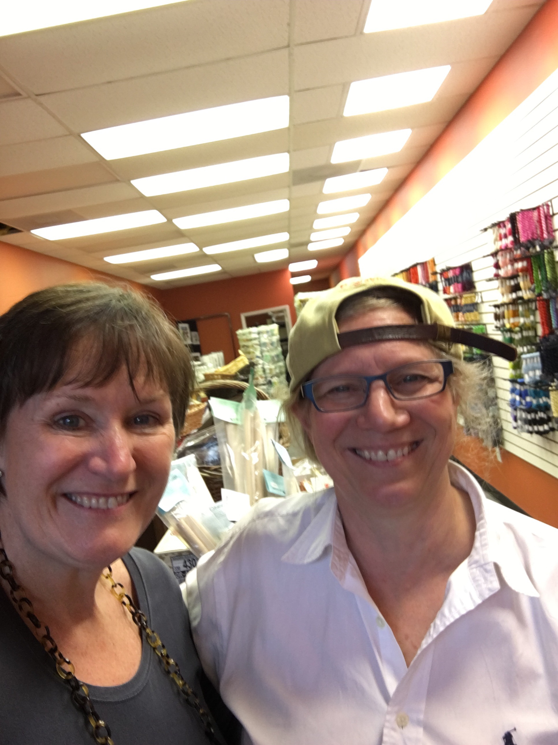 After our visit I went to do my good deed of the day. Chapel Hill Needlepoint is moving locations. Due to issues beyond her control Nancy, the owner, got the joy of moving everything in the store today, which is right at the start of her big annual sale. Today a few loyal friends came to help unpack and hang up fibers. The new location is a little farther for me to get to, but it has a lot of perks. It is on Martin Luther King, Jr. Blvd right by the Root Cellar, where the old Foster’s used to be and just beside Fly Leaf Books. The stitching table still be there and now we have places to get lunch.