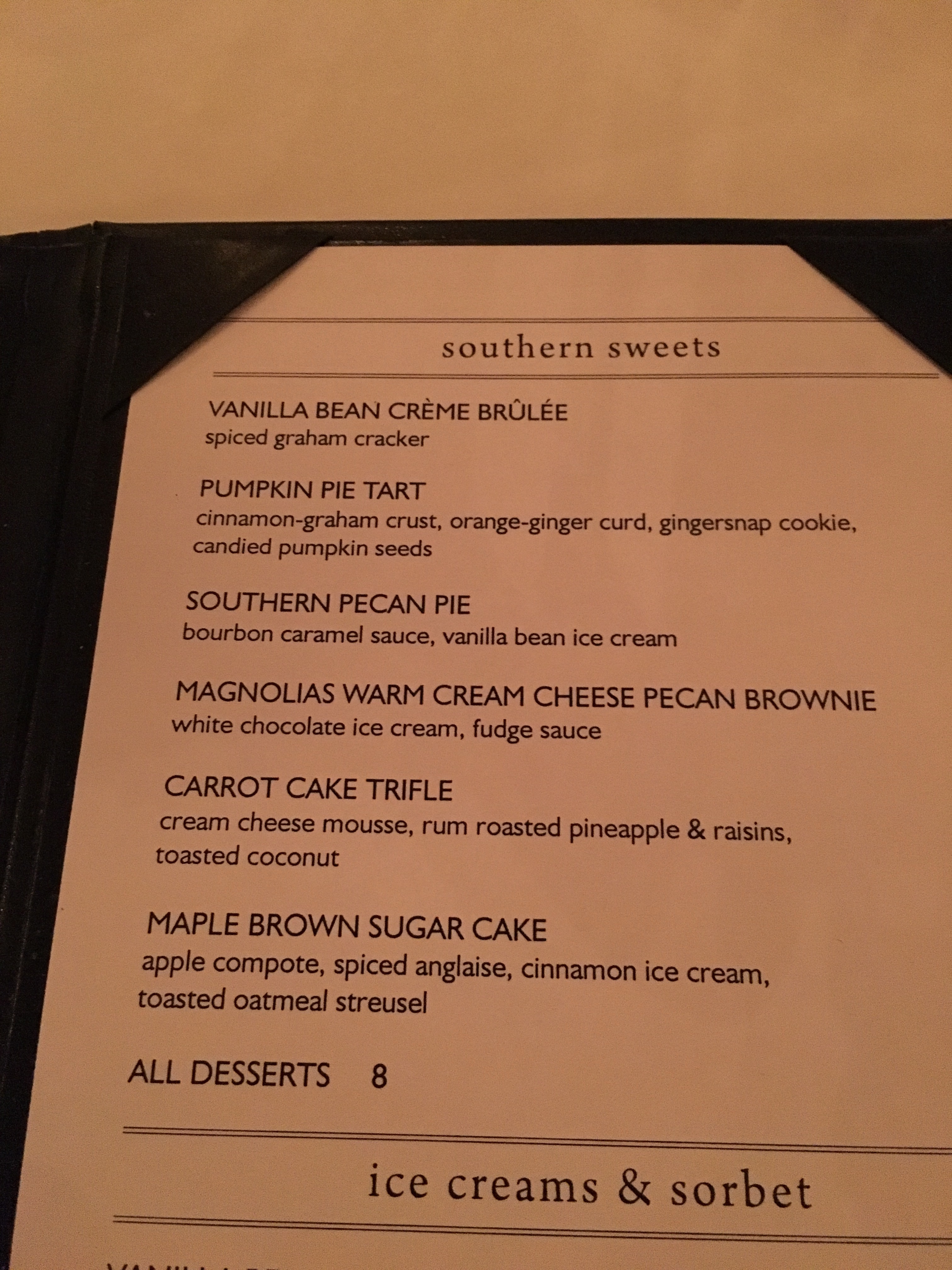 Margaret had gotten there first and was a little panicked because they did not have our reservation, of course she asked for Dana Carter’s table, forgetting my name has been Lange for almost 24 years. Once we got that issue settled we had a grand time visiting over many drinks and a long drawn out dinner. Margaret was a really good sport about the late arrival of her very blackened pizza. We insisted she send it back and she went with the fried chicken instead. That led us into her history of loving fried chicken– always getting the Swanson fried chicken dinner when we had frozen dinners on babysitter nights, eating fried chicken in bed at the Holiday Inn on our way to summer vacations in Pawleys Island and having fried chicken on every birthday. These are memories you only sisters appreciate.