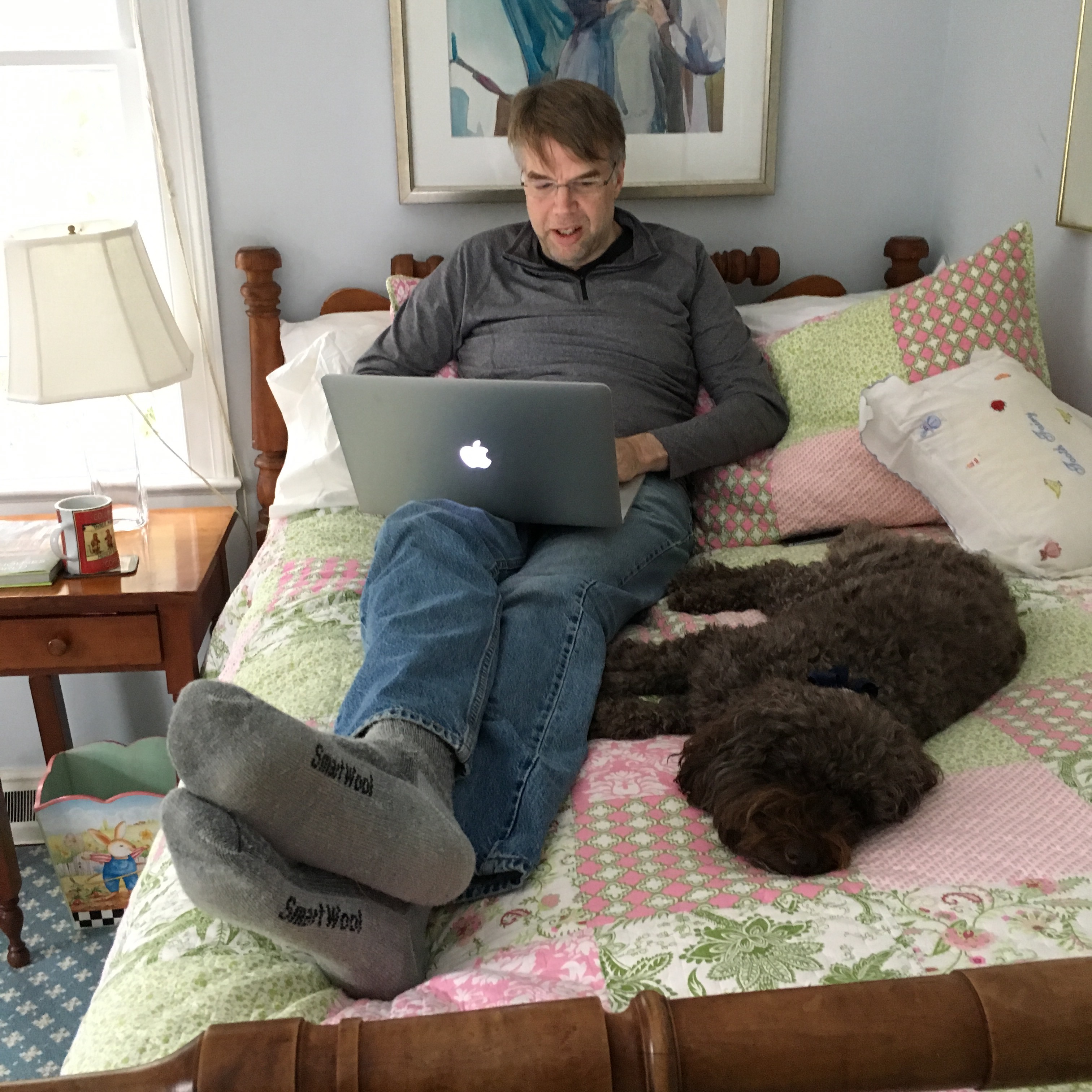 Now that I have to wear reading glasses all the time I feel like I look like the grandmother in little red riding hood in my nightgown. I guess if I wore a white cotton cap to bed that would really seal the deal. Poor Russ, Lanz flannel is just nobody’s fantasy. For now I think he should be glad I am not wearing the little white bonnet. Who knew my sleep wear could get worse.