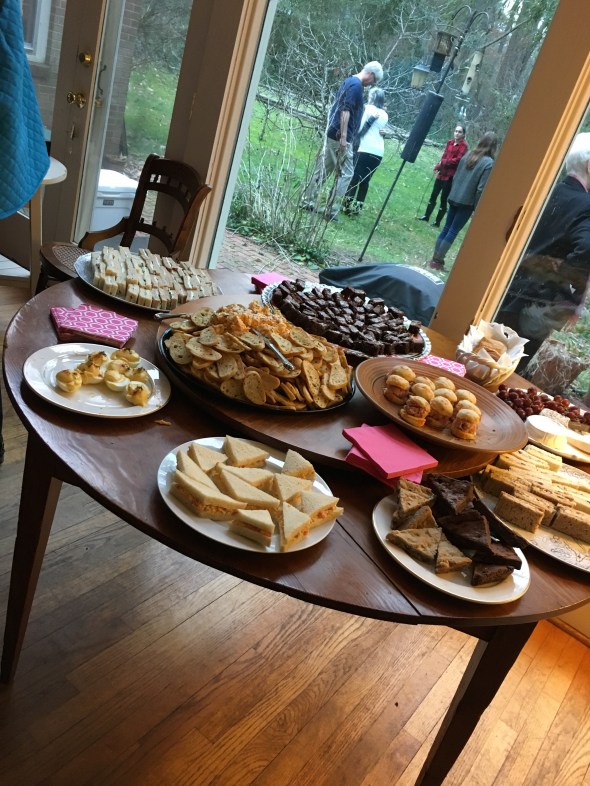 This afternoon I went over to Amy’s mother’s house and was happy to get to hug her in person and then set up for the visitation. People started showing up early and the line at the door never stopped. Elizabeth had many friends and so does Amy. People came to have a drink and see each other and tell Elizabeth stories and love on Amy. I was happy to keep pumping out the food and washing glasses and making sure people had drinks. That old catering desire to make sure everyone is well taken care of never goes away. As Russ says, I used to use my skills mostly for weddings, but now at my age it is almost exclusively for funerals.