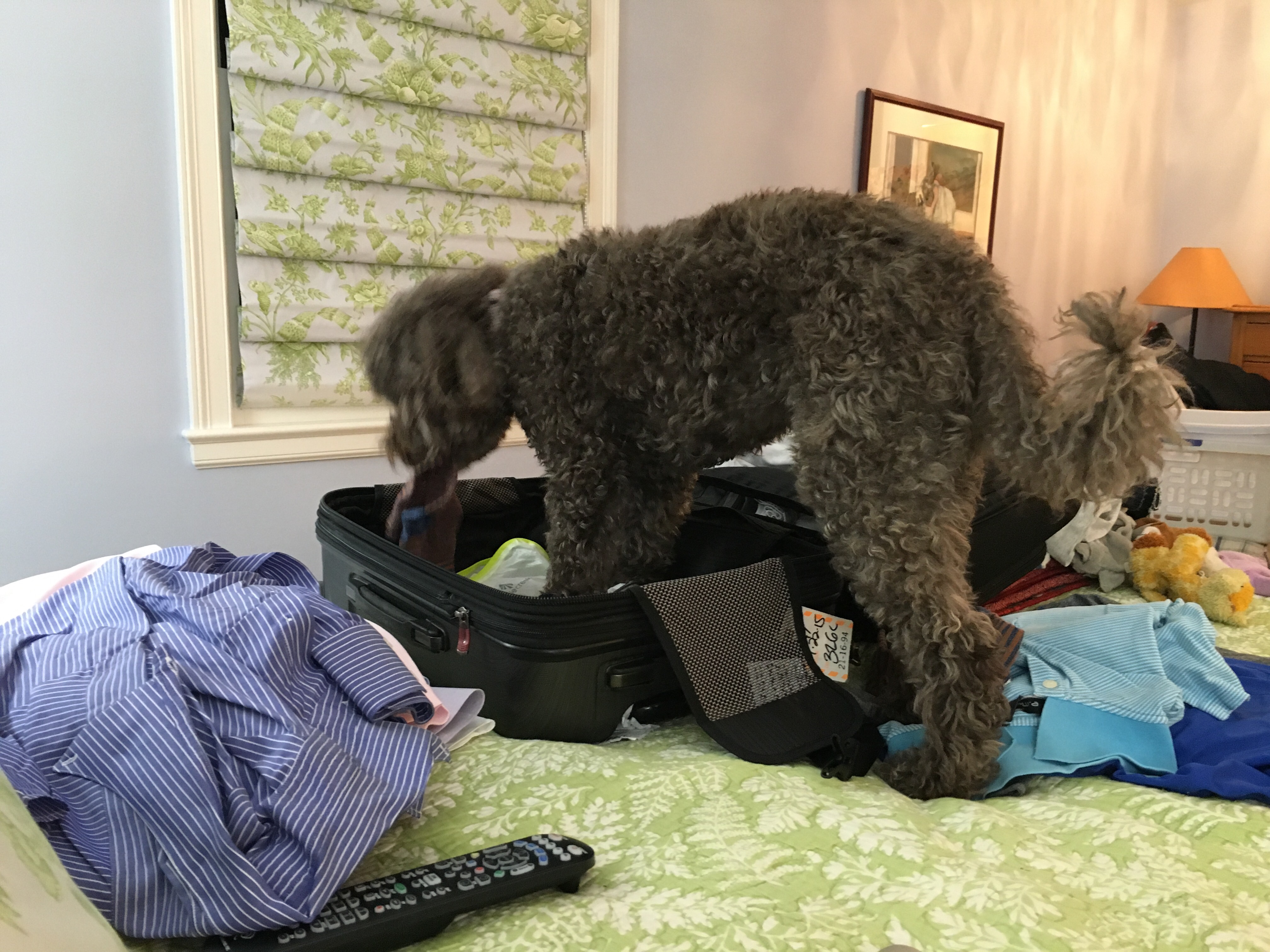 Today her wish came true and she shook and shuttered as she stood on her hind legs cheering as Russ came in through the door. Even though he hasn’t slept in over 24 hours Russ went ahead and emptied his suitcase into the laundry hamper. As he was doing it Shay got in on the action and looked through his bag for a present for her.