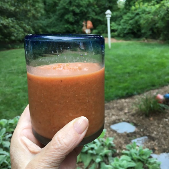 Posted: July 2, 2016 Filed under: Uncategorized 1 CommentIn our house we don’t agree on our favorite type of gazpacho. I normally make a chunky, spicy, no olive oil version because it is the most healthy. Russ likes that kind, but it is not Carter’s favorite. She learned to make Gazpacho in Spanish class the traditional way, well blended with bread and oil. Bread and oil!!! Now it is something naughty.