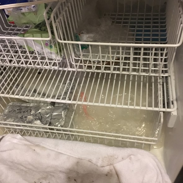 So like my childhood summer days, I stood beside the open freezer chilled by the giant blocks of ice. The only difference was I was hammering the ice, heating it with a blow dryer and pulling out all the food to see if it was salvageable.