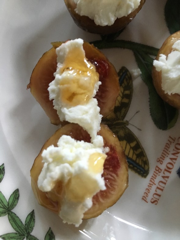 I might have been introduced to them in Martha Stewart’s Entertaining cookbook, but still had not met one personally. I have some recollection of eating a fresh fig at the restaurant at the Domain Chandon winery in Napa valley on vacation with my family. It seemed very sophisticated, yet so familiar, from those first Newton days, but was so much better fresh.
