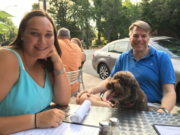 After dinner at a place with outdoor tables so Shay could be with us we drove around Winston Salem and I showed Carter where my father grew up, went to elementary and high school before going back to the Kimpton where two little girls coming out of the hotel with their parents loved on Shay for a good five minutes. Shouldn’t all hotels be dog friendly?