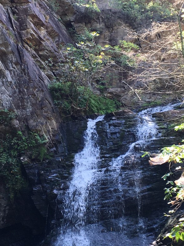 We were off to Hanging Rock State Park to do a little hiking and waterfall viewing. On our way we passed a sign for Vade Mecum, which I think is the camp my father worked at as a teenager. Hanging Rock is a lovely huge state park. The steep steps down to the lower cascades falls were easy for Shay, not so for me. A hot summer Sunday makes the pools at the falls a popular spot for parents of little kids. Those kids don’t mind climbing the rocks to get there. I, on the other hand, was worn out after the climb back in the heat, especially since we did not swim.