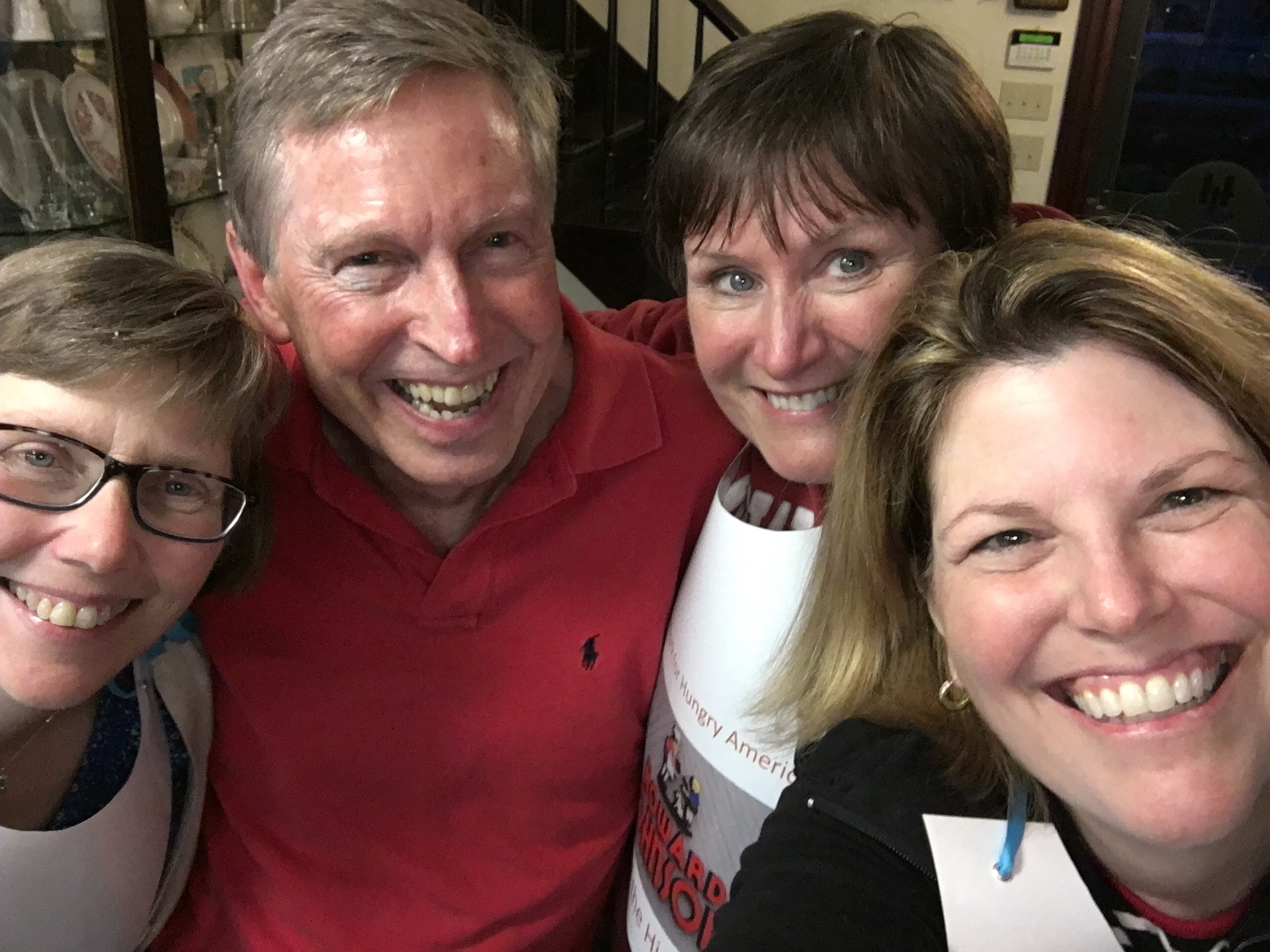 As is my role, I was chief cook, making squash casserole and “Somebody died? Fried chicken” and rice. Shannon set a beautiful table and Julie made the salad under strict instructions from me. According to my friends I am just as bossy as I was in boarding school. They are still my younger friends who I must guide.