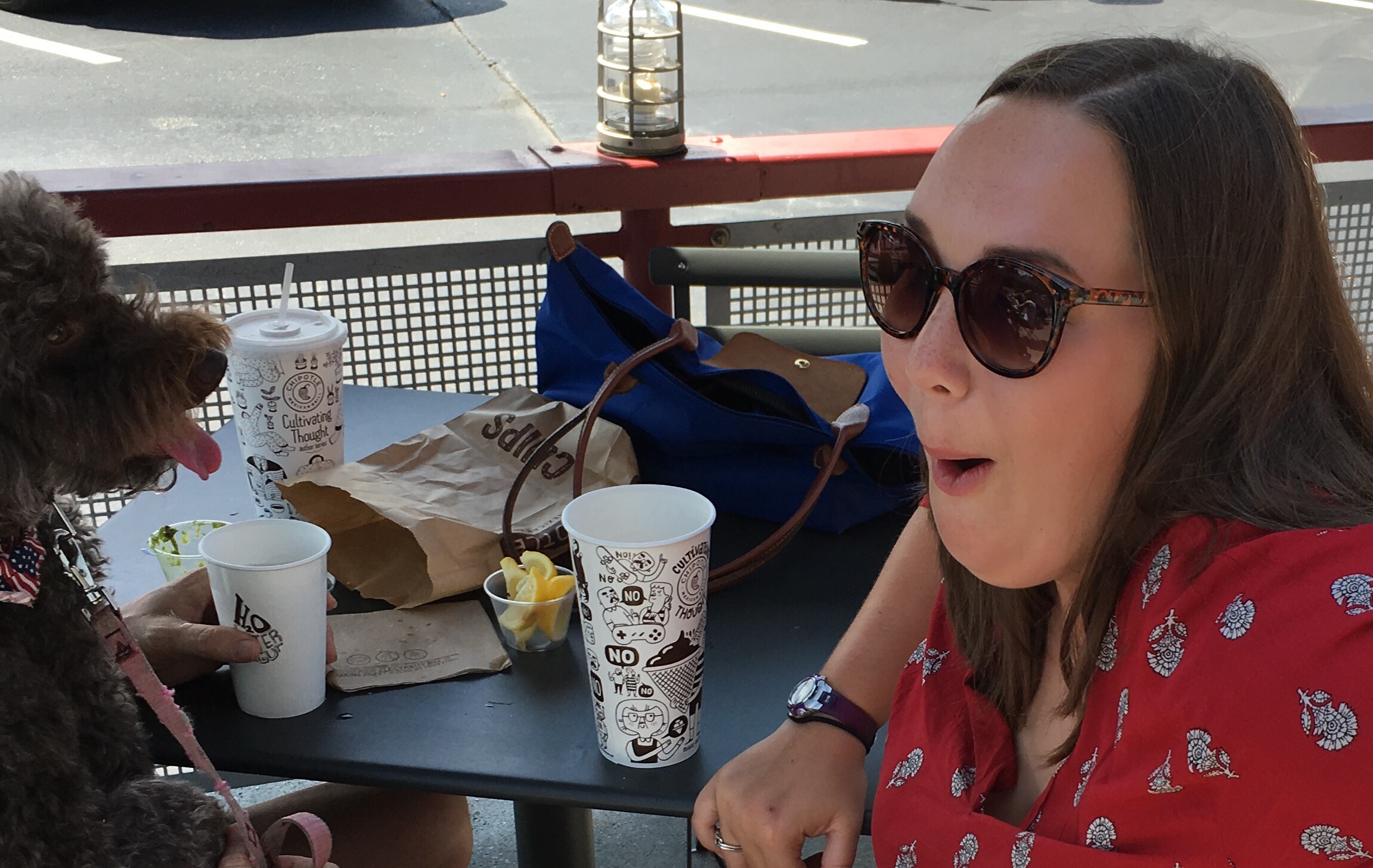 Posted: July 31, 2016 Filed under: Uncategorized Leave a commentWe awoke early at our happy Kimpton home at the Cardinal Hotel because Carter had to get back to camp to prepare for today’s arriving campers. Shay had become a popular dog at the Kimpton. Even at seven in the morning as I was taking her down the elevator and out the front door to use her facilities it took a while because she had to stop to be pet by the friendly staff at the hotel.