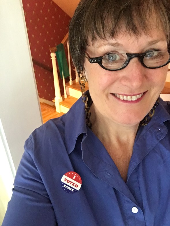 Posted: October 21, 2016 Filed under: Uncategorized Leave a commentThe news keeps taking about this election possibly being a low voter turn out race. You couldn’t tell that from the crowd at the early voting poll I went to today. I knew it was going to take a long time when I drove up and there was a line of cars waiting to turn into the parking lot. My friend, Andy, told me she waited there yesterday for two hours. I was prepared to wait at least that long.