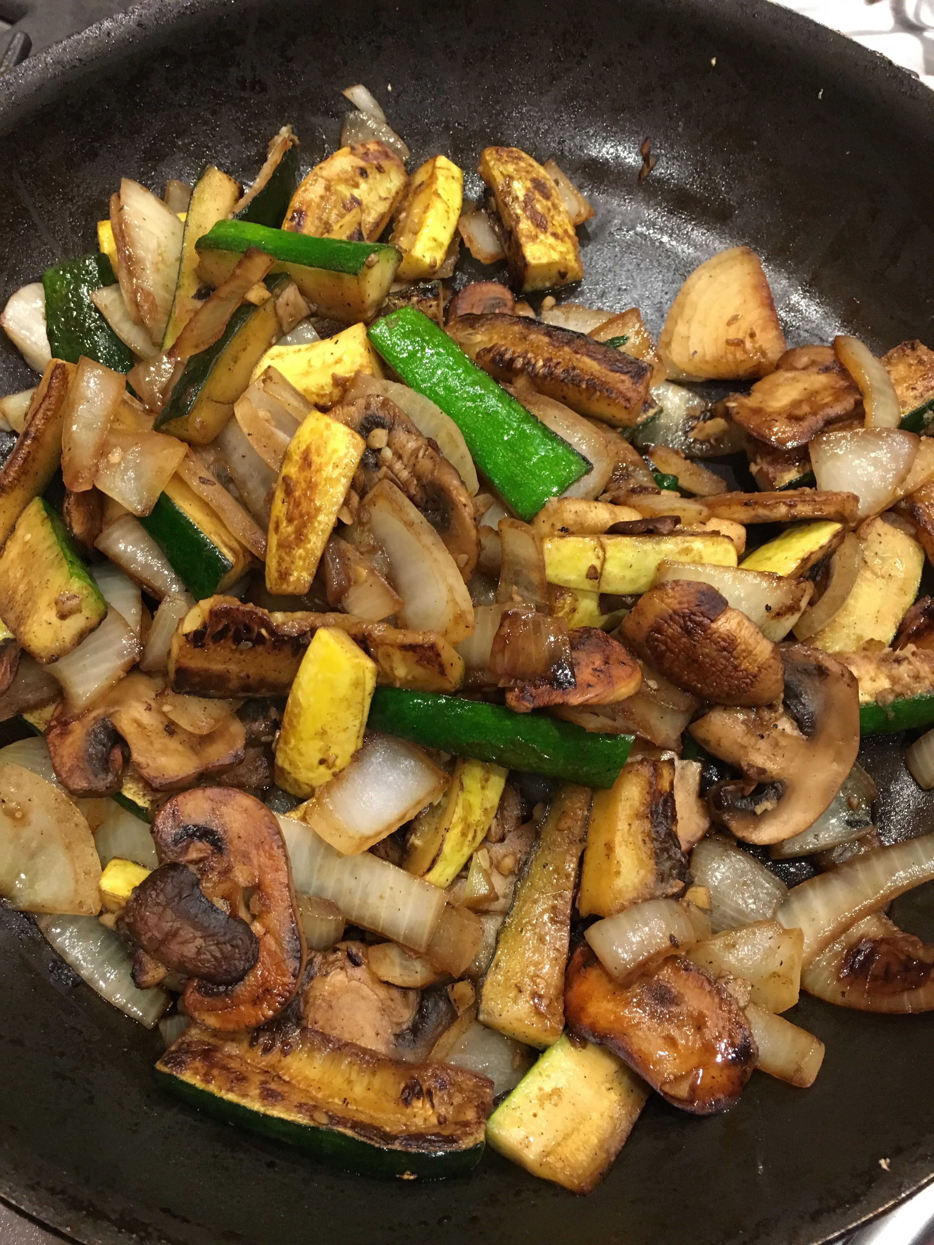Posted: October 3, 2016 Filed under: Uncategorized Leave a commentCarter was working on her college essay today. That got her in the mood for food like she ate in Taiwan, where she went to school when she was thirteen. She asked me if I would make her hibachi vegetables for dinner which I think of as a totally American thing, but what the hell, she was asking for vegetables. While she was at basketball practice I cooked up some onions, zucchini, yellow squash and mushrooms. At the end I added minced garlic, ginger and soy sauce, per Carter’s request.