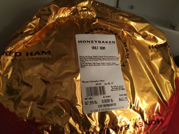 I have to say I am not “making” the ham. Today I went to the Honey Baked Ham store to pick up our meat. I have no guilt about buying a ham since I wold be hard pressed to make a ham better than the honey baked one.