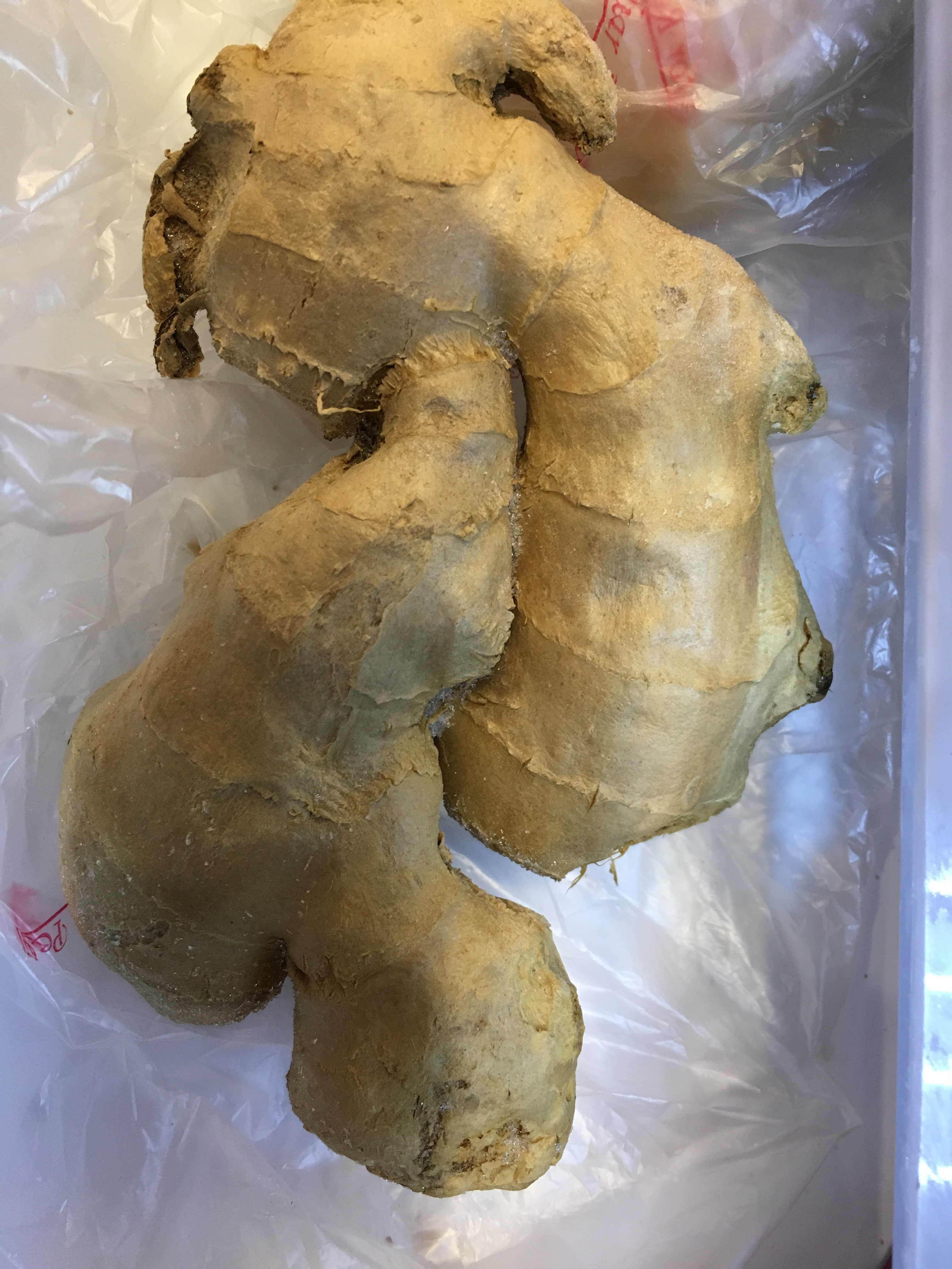 There in the high rent district of the super market were a few tubes of garlic and one lone lemon grass, but not a finger of ginger, whole, minced or pulverized could be found. By this time I was tiring of this treasure hunt so I just went home. I opened the freezer to find four nice sized hands carefully wrapped. I am ever so thankful that I keep a well stocked larder so I have the freedom to whip up new recipes without having to interrupt the creative process with shopping.