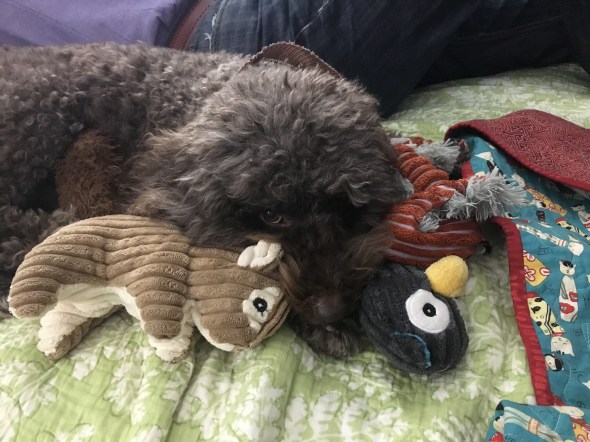 I am worried that as more and more of life goes virtual we are going to become less and less good at being human. I also fear that our pets are getting left behind in this virtual world. Shay would prefer one of her humans to play with her, but if we are all too busy with our devices she is left with her toys. You can see how happy her virtual friends make her. Not one of them can rub her belly.