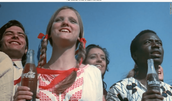 This Coke ad reminded me of the “I’d like to teach the world to sing” Coke ad. In 1971 when that ad came out it was ground breaking in the rainbow of people it featured. It was a changing moment for Madison Avenue. Finally regular people were staring in ads and we liked them and it made us feel good about ourselves.