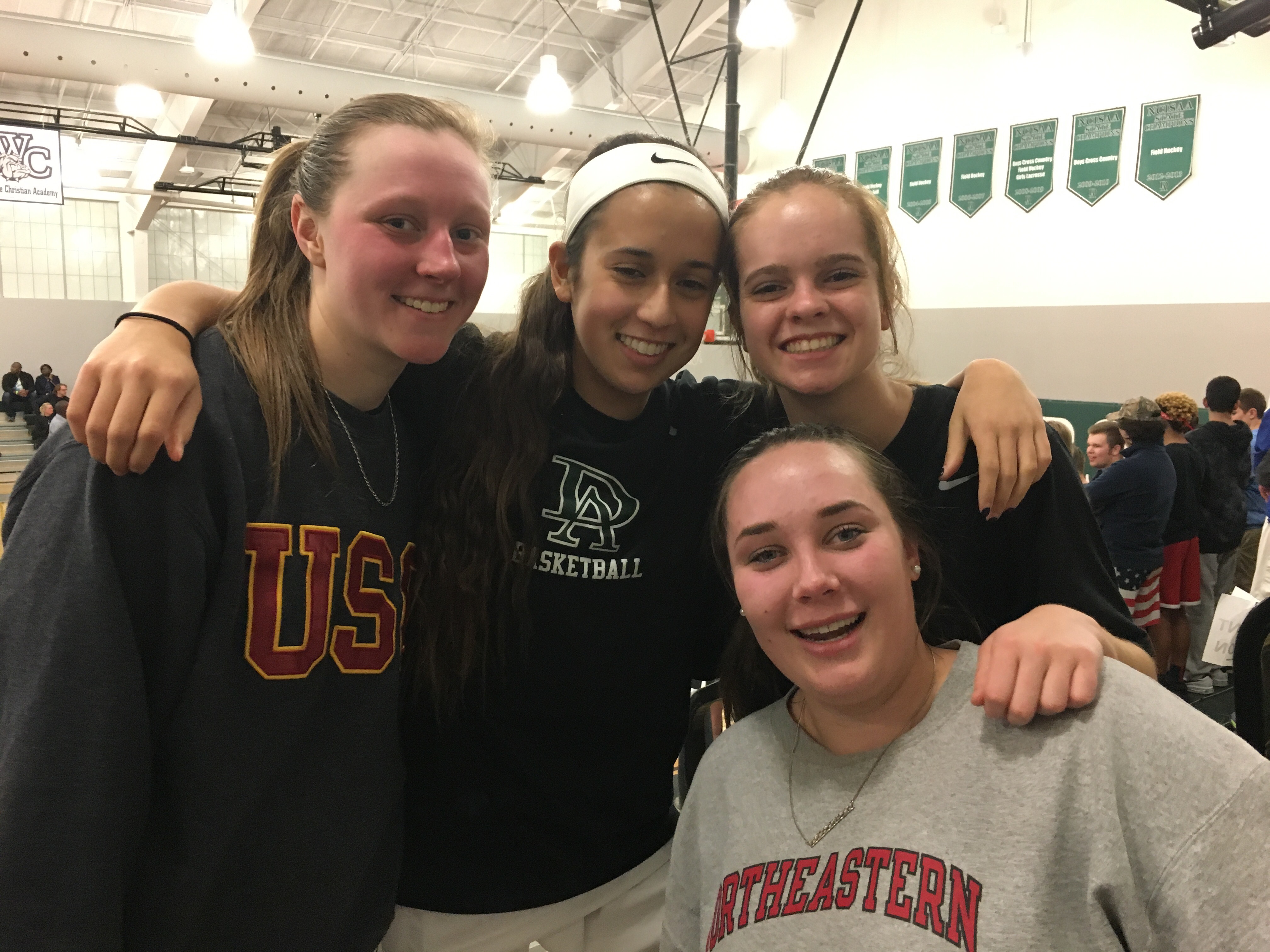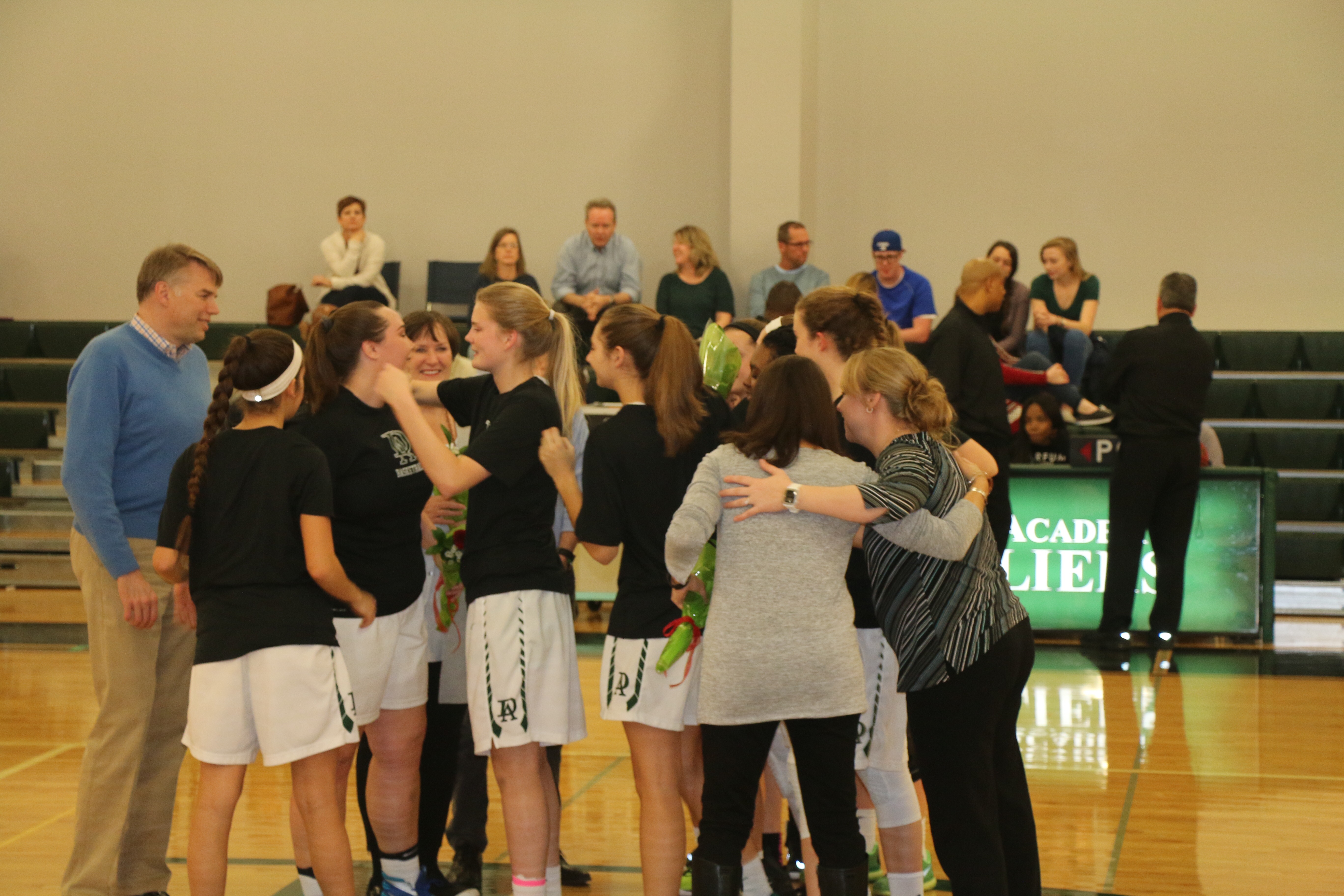Belonging to a team has been the best benefit. Not just for Carter as a player, but for me and Russ as parents. We have an exceptional group of supportive parents who cheer each girl on as if they were their own. When Russ and I arrived at the gym we were met by Liz & Bennet Roberts and Liz’s grandmother who came to celebrate senior night even though Liz is now a Freshman playing basketball at UNC. We have missed them at every game this year and it was so generous of them to show up for senior night tonight despite having graduated from DA. That is the kind of family that this basketball team has been.