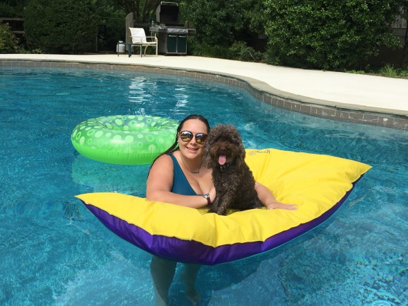 We considered it a huge victory. I am not sure she will ever become a “water” dog, but I am so happy she got to cool off and join the family in the water, rather than pacing the side of the pool worried that we were in the water and she was not. Who says you can’t teach an old dog new tricks?