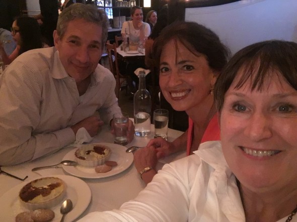 We ate lunch and went to see War Paint the play about the rivalry between Elizabeth Arden and Helena Rubenstein. It was a fun way to spend a hot afternoon before we joined Steve. We laughed, ate, told stories and it seemed as if we still were in France together. Parting was not so sad since we seem to be getting better at having these reunions. Next one we need Marty D’Luzansky to join us.