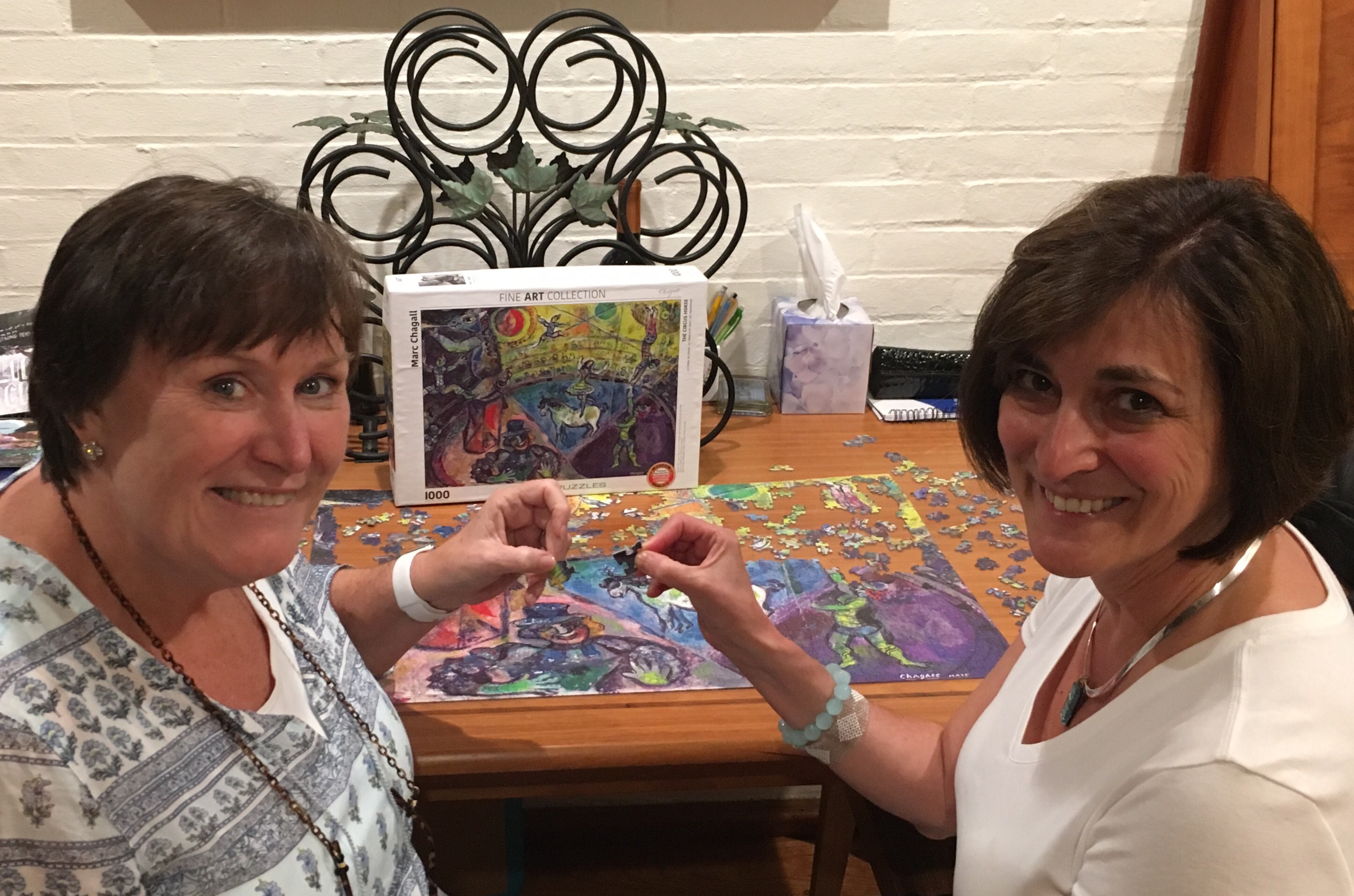 There just isn’t enough time in life to visit with all the friends I love. I hope that my friends will let me repay their hospitality and come and stay with me. Guests should always leave before their host wishes they were gone, but seeing Janet one night is just too short, especially since we have to finish the puzzle before I go.