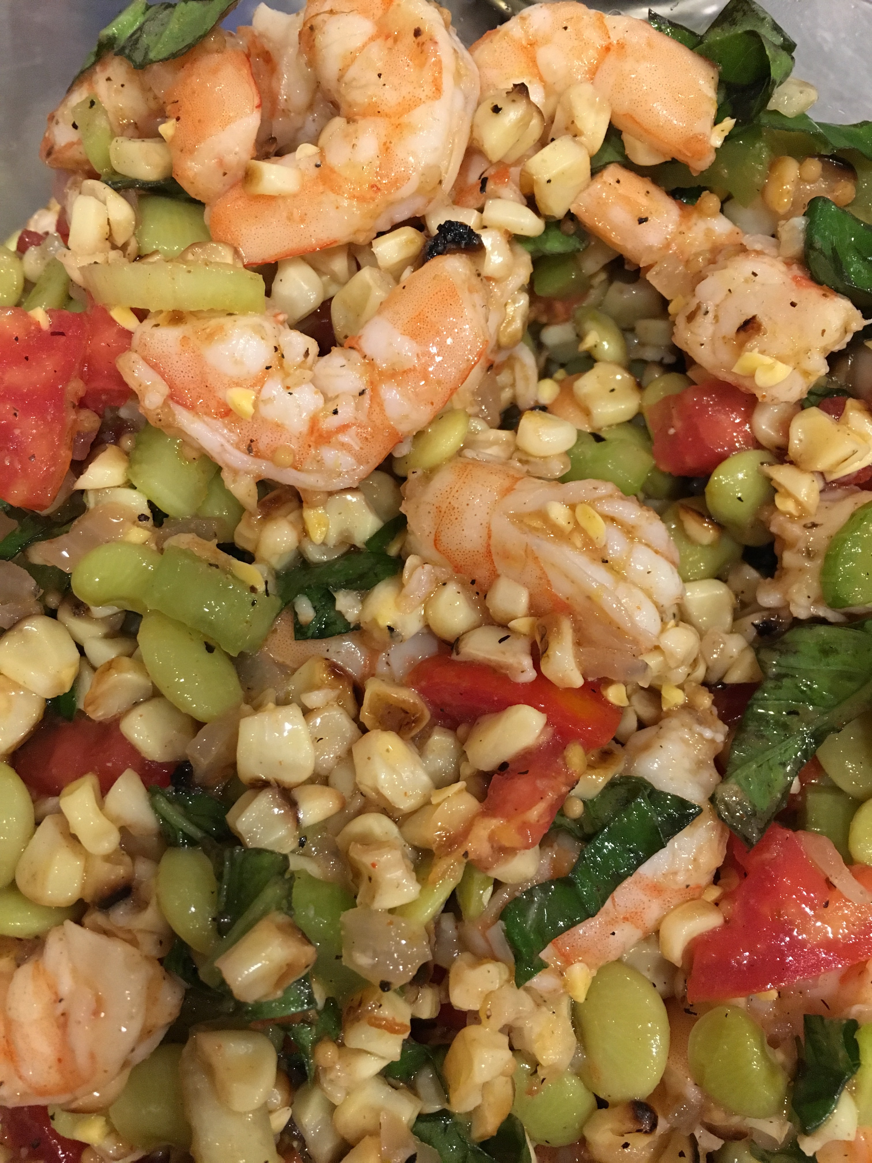 Posted: July 3, 2017 Filed under: Uncategorized Leave a commentI went to the farmers market and bought the most beautiful shelled butter beans, corn and tomatoes. I could have made succotash with the beans and corn, but decided to make it a main corse my adding shrimp and a vinaigrette. It was hearty yet refreshing.