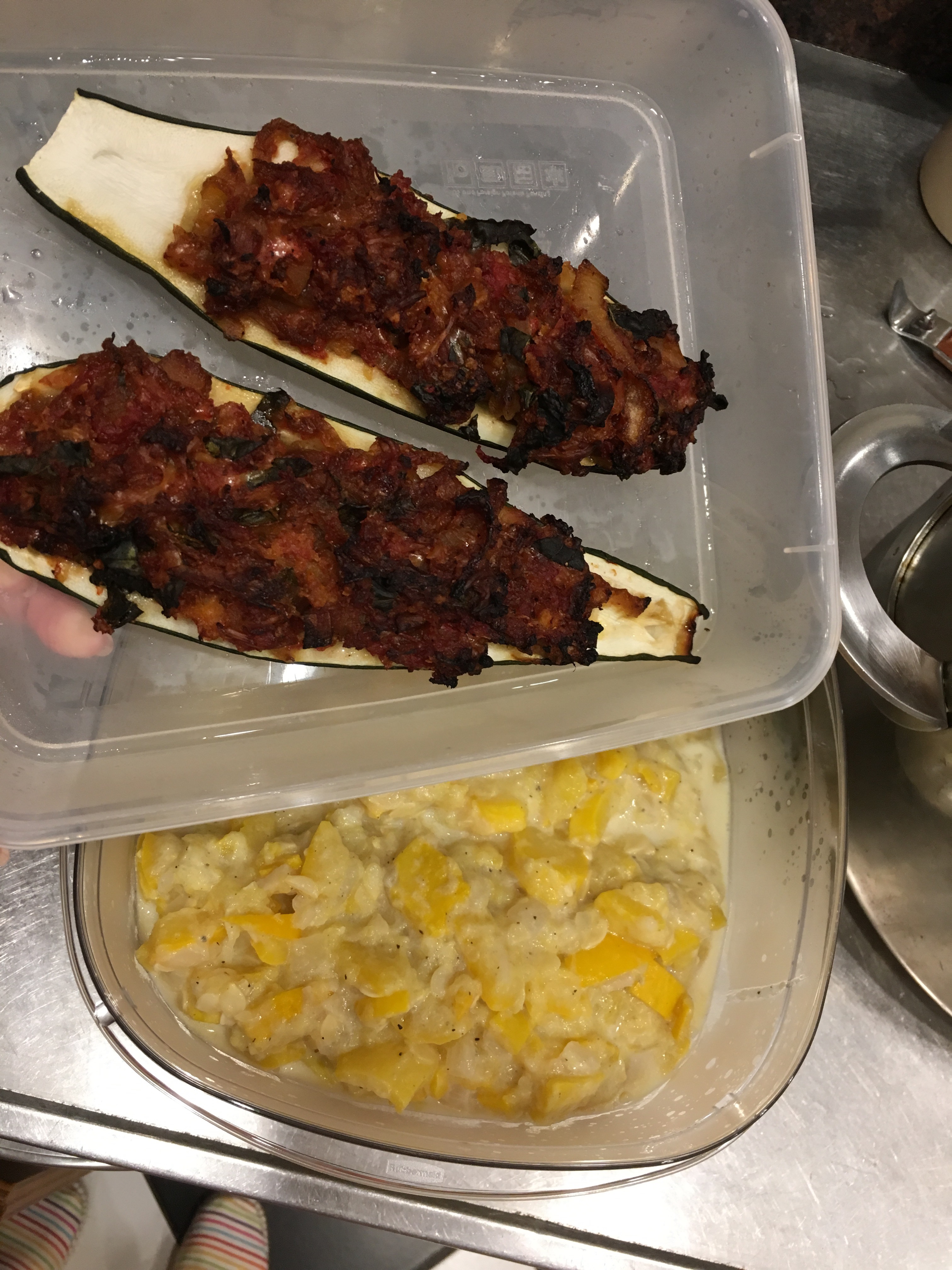 So I added to the leftover supply by making a big pot of yellow squash and onions and stuffed zucchini. The good news is no new food was purchased to make these dishes. The bad news is we are going to be sick of squash if we have to eat it at every meal for the next three days. So much for the dent in the refrigerator. I really should adopt three teenage boys, they could solve this problem.