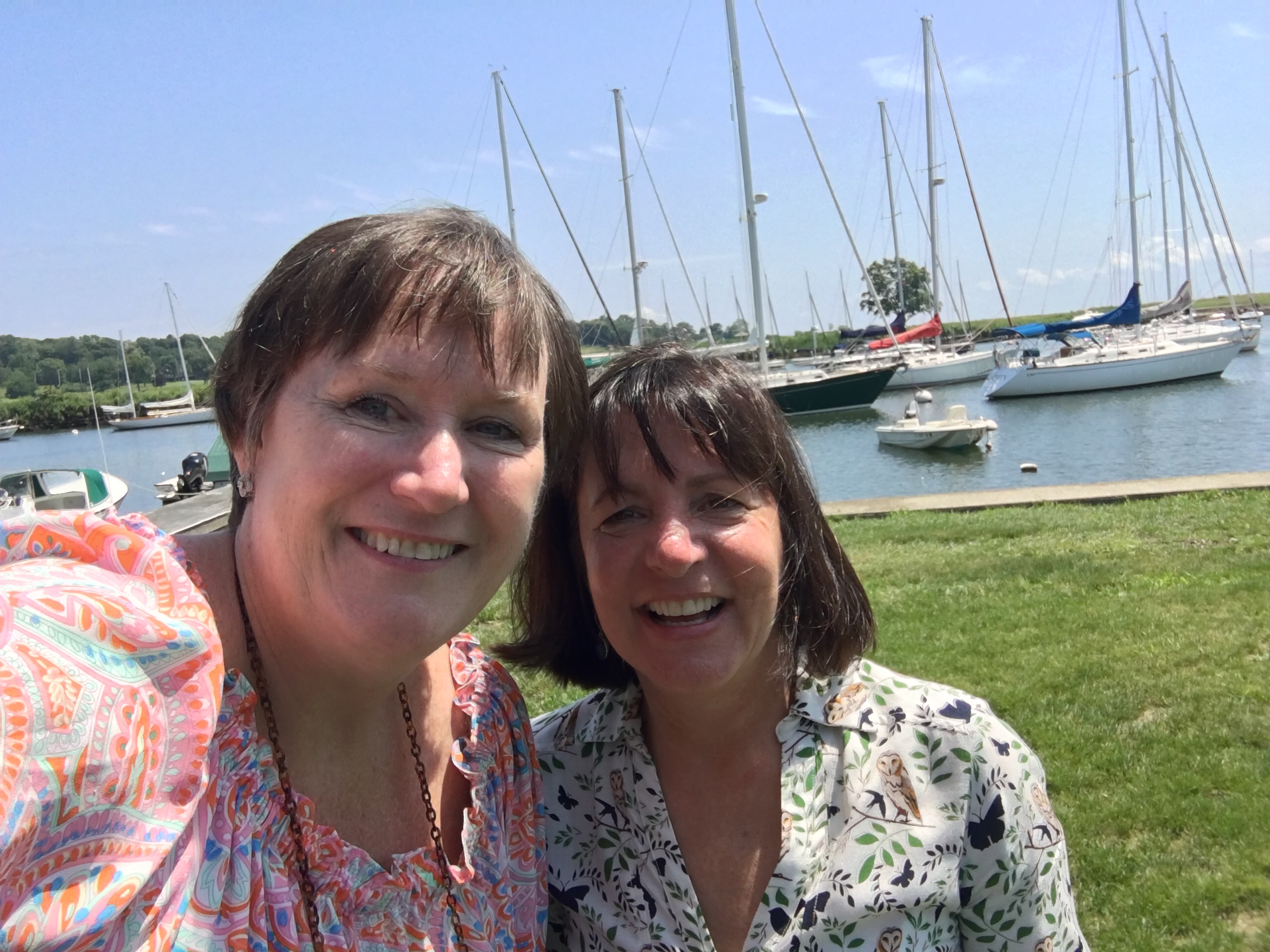 After that series of sad calls I pulled into Jamie’s sweet house on the beautiful Maine coast. John, her husband and my Dickinson classmate was there as was her grown daughter Emily. Jamie and I went to sit in the Adirondack chairs right at the waters edge with big Maine pottery mugs of yummy iced tea.