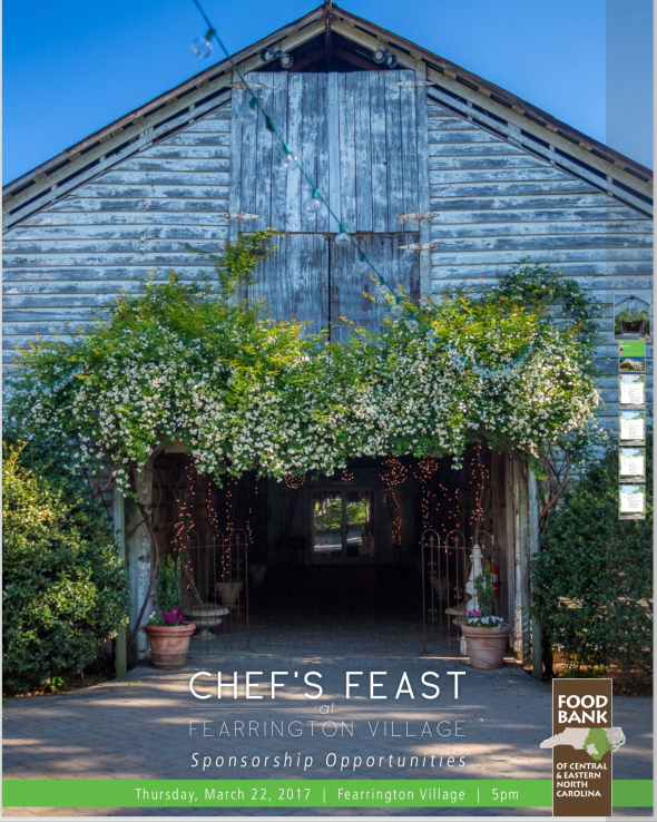 Posted: September 28, 2017 Filed under: Uncategorized 2 CommentsI may have retired from the board of the Food Bank, but that does not mean I am not still working to help them eradicate hunger in North Carolina. One of the ways I am doing that is to chair a big event in March, the Chef’s Feast. This year Vivian Howard, star of the TV show A Chef’s Life on PBS and the chef and owner of the Chef and the Farmer in Kinston is the lead celebrity chef at our dinner. Fearrington Inn has graciously donated the use of the Barns for our location as well has their award Winning chef Colin Bedford as one of the chefs.