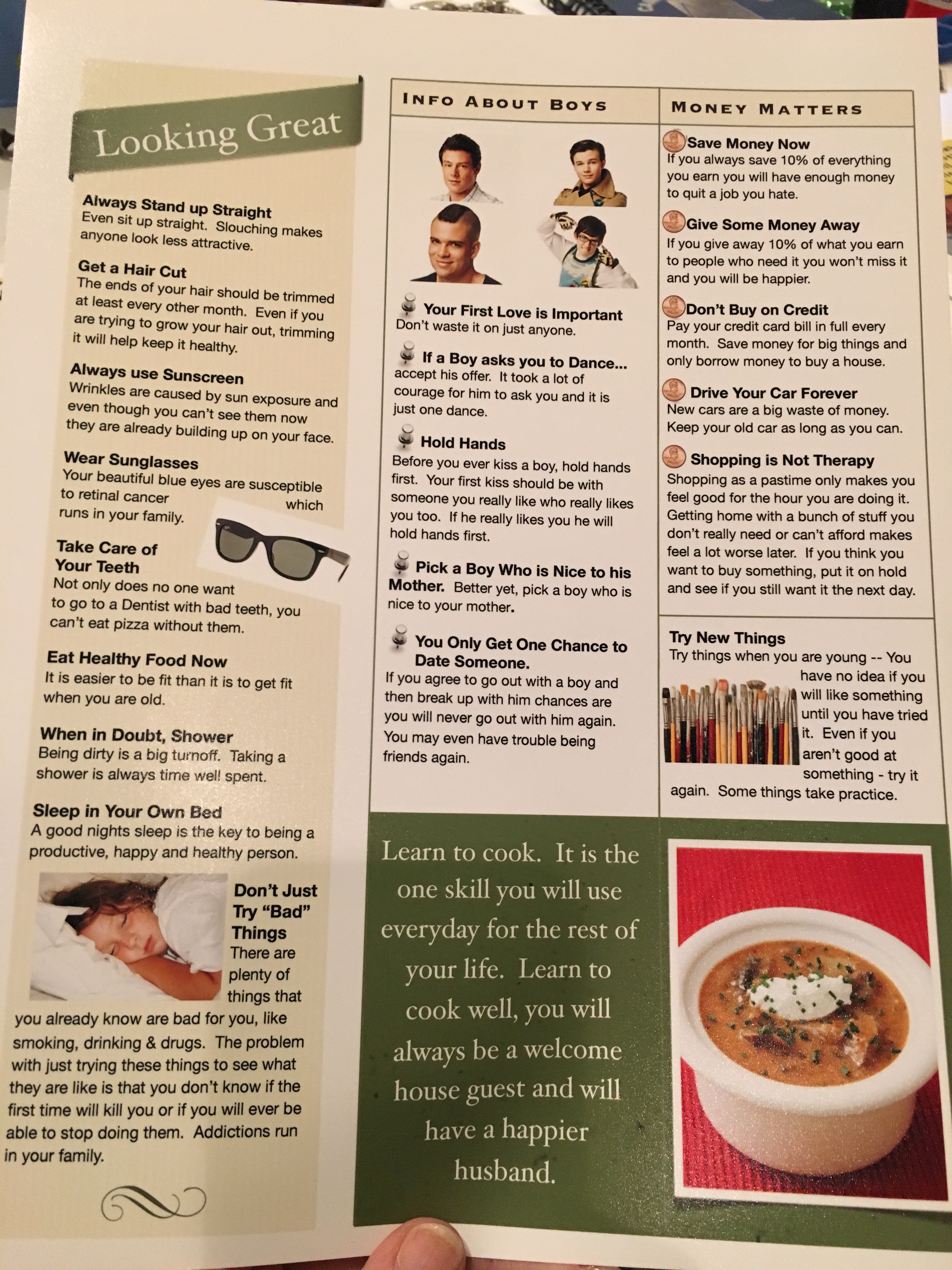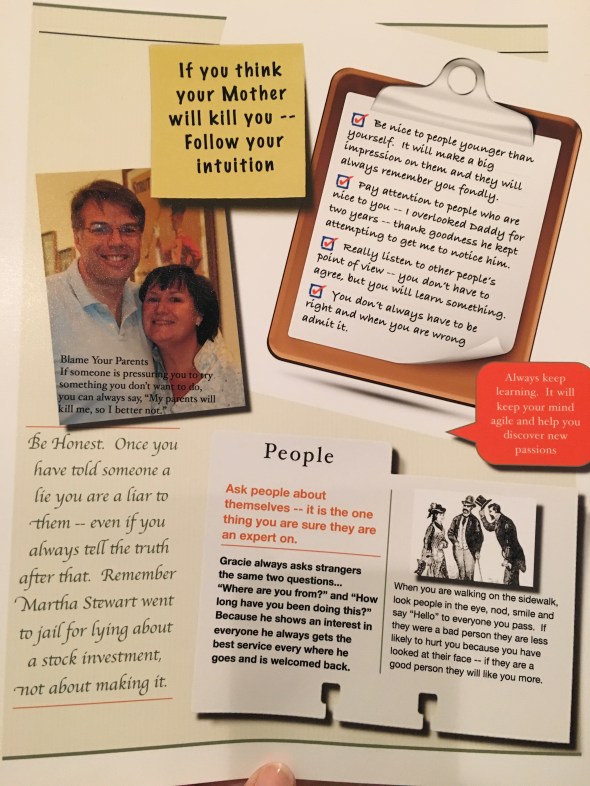 One thing I found on her desk was a 13th birthday “newsletter” I created for her. Thirteen is a big rite of passage into teendom. I had a lot of advice I wanted to impart on her then and listening to your mother is not a normal 13 year old skill.