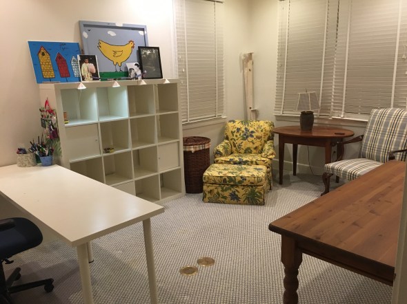 Posted: September 1, 2017 Filed under: Uncategorized Leave a commentI started the room reclamation process, changing Carter’s office into my sewing room, a couple of days ago. The term “Carter’s office” is a major misnomer. It was the the room next to her tiny bedroom where we put her desk and it had all the leftover furniture from when it was Russ’ office. At first she used her desk, but then it became the repository for stuff. Then she used the closest in the office to put things and eventually the chairs became places to put clothes and it never really got better.