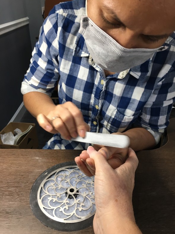 One day I had a manicurist who told me about a powder called SNS that looked and acted like gel, but stayed on in water and lasted three to four weeks. I loved it, but found that very few manicurist were very good at applying it. Then I met Cindy. She was the bomb.