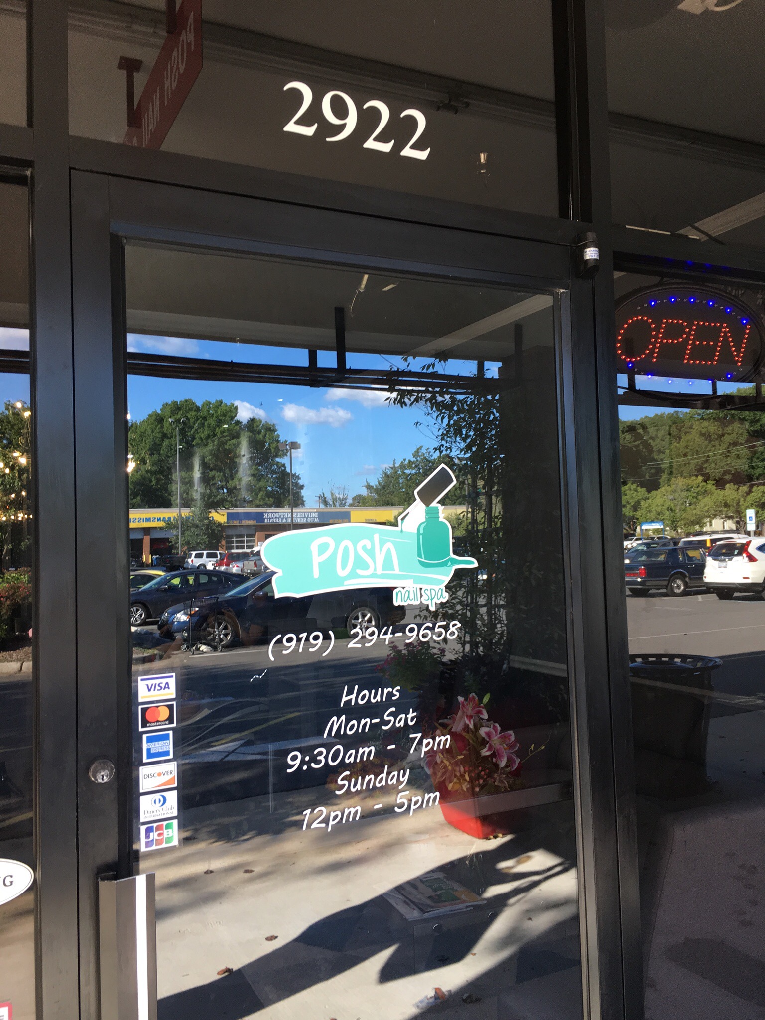 Recently, Cindy left her old salon and opened her own place called Posh Nail Spa, not to be confused with Posh the Salon. I went today for my first visit. It is a very clean and well outfitted salon next to the Food Lion on Main st. Near Erwin Square.