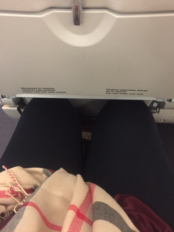 I got a text picture of her legs on the flight. The space between seats was made for midgets and she said there wasn’t even a seat back pocket for cushion. The torture of budget travel and long legs. She announced she is going to work very hard and earn plenty of money so she does not have to travel like this very long.